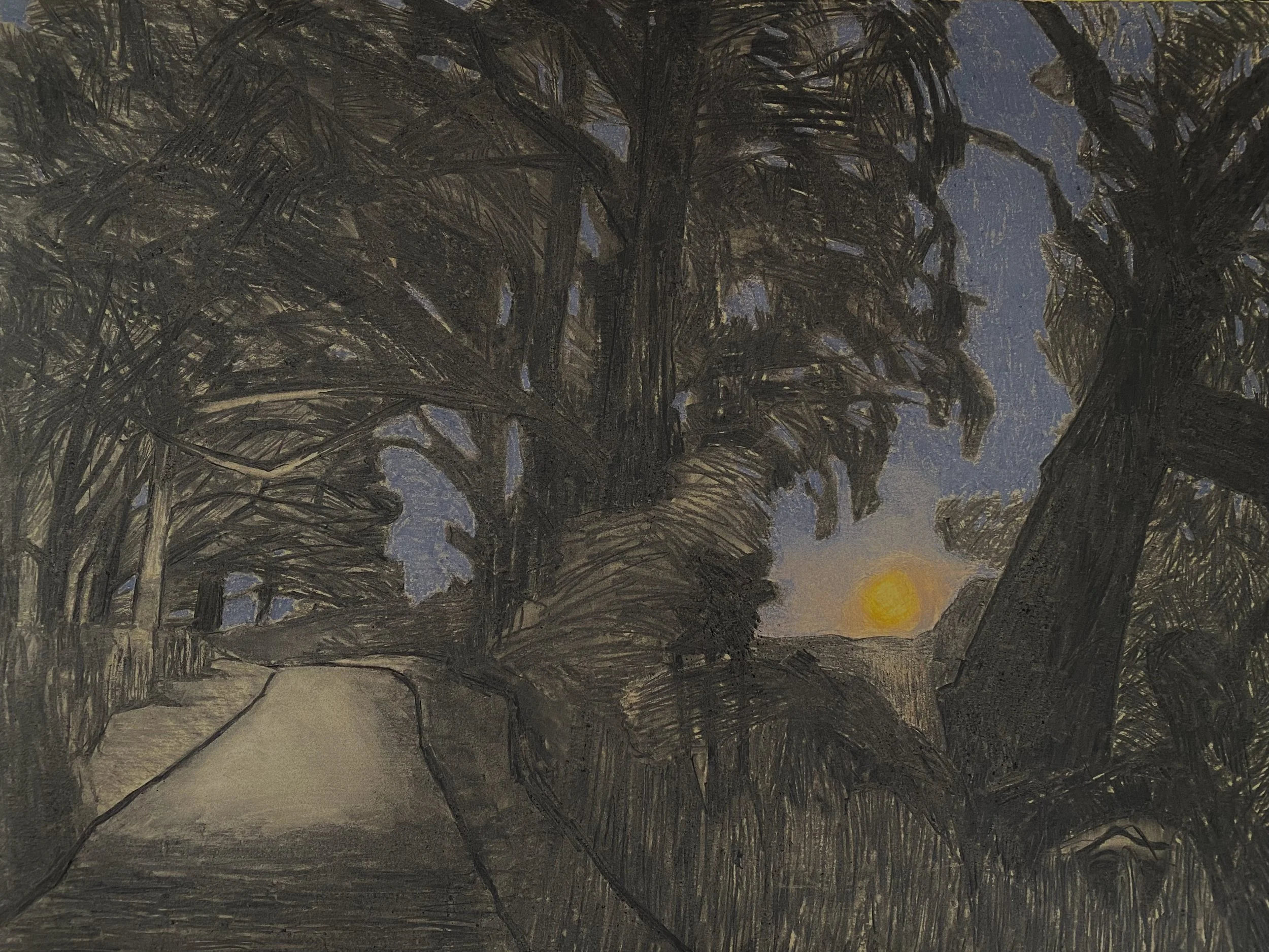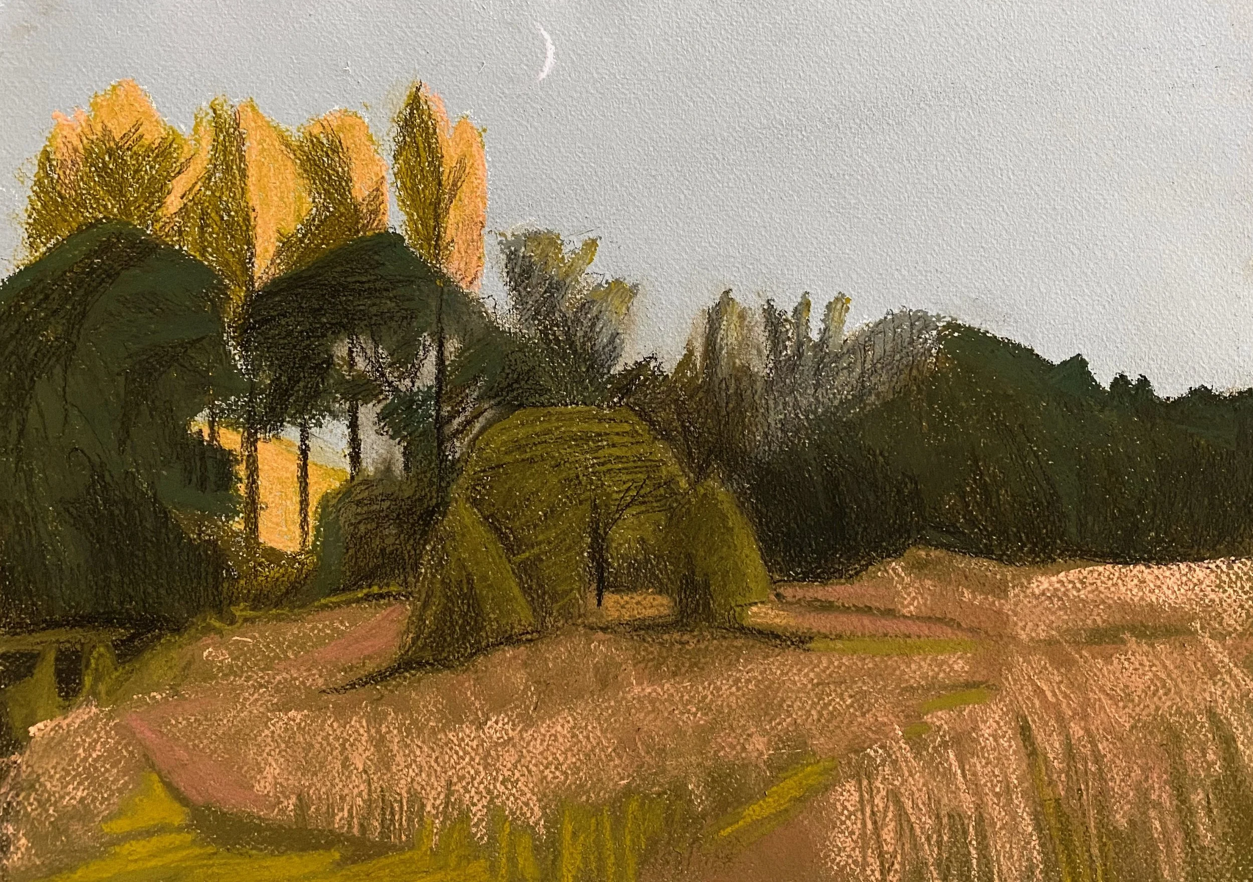 I like to work intensely on a specific subject. Spending years moving around a place, whether it’s one field or a 50 mile long footpath. Looking and drawing, looking and drawing over and over again. Saturating myself in the local colours, the repeating shapes, the flora and fauna, the weather, the moon, sounds and smells of a particular landscape.
